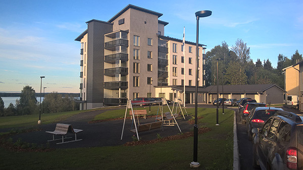 Ikäihmisten hyvinvointikeskus 6-kerroksinen kerrostalo.